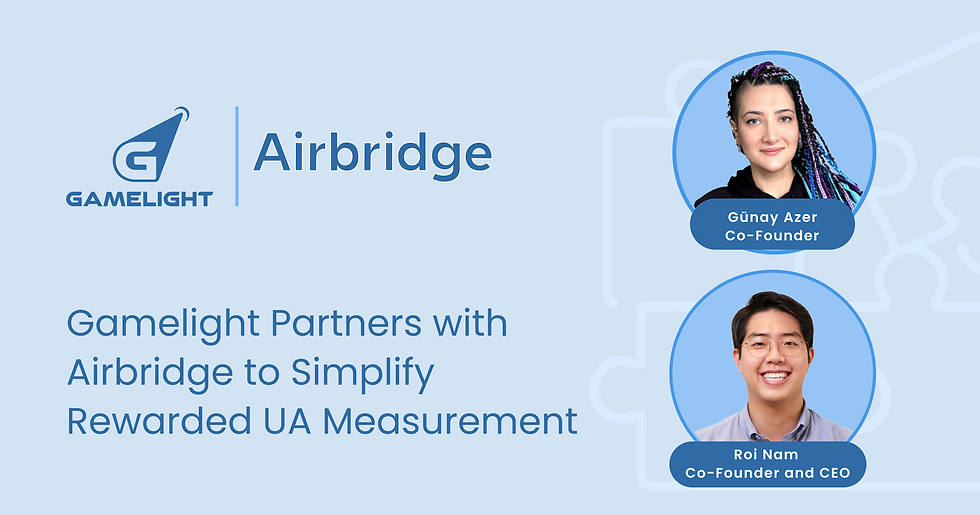 We’re delighted to announce that Gamelight, the leading rewarded user acquisition (UA) platform, is now fully integrated with Airbridge, a trusted mobile measurement and attribution partner. Through this integration, app and game developers using Airbridge will be able to leverage Gamelight’s advanced Rewarded UA capabilities, while enjoying the deep measurement, transparency and cross-platform insights Airbridge is known for.
